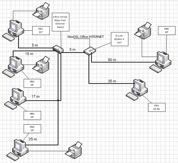 Ну в общем тема та же. Шеф поставил задачу соединить 6 пк в сеть, но всё бы ничего с этим проблем нет есть 8 портовый свитч, но недавно подключились к интернету и вот тут-то у меня проблема