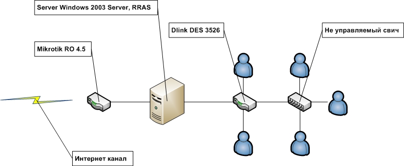 1. а) в виндовс-сервер вставляется еще одна сетевуха, к которой подключается изолированная сеть 10.х.х.х. Минусы - тратятся деньги на сетевуху, нужен лишний слот на нее же. Плюсы - самый простой в конфигурации способ