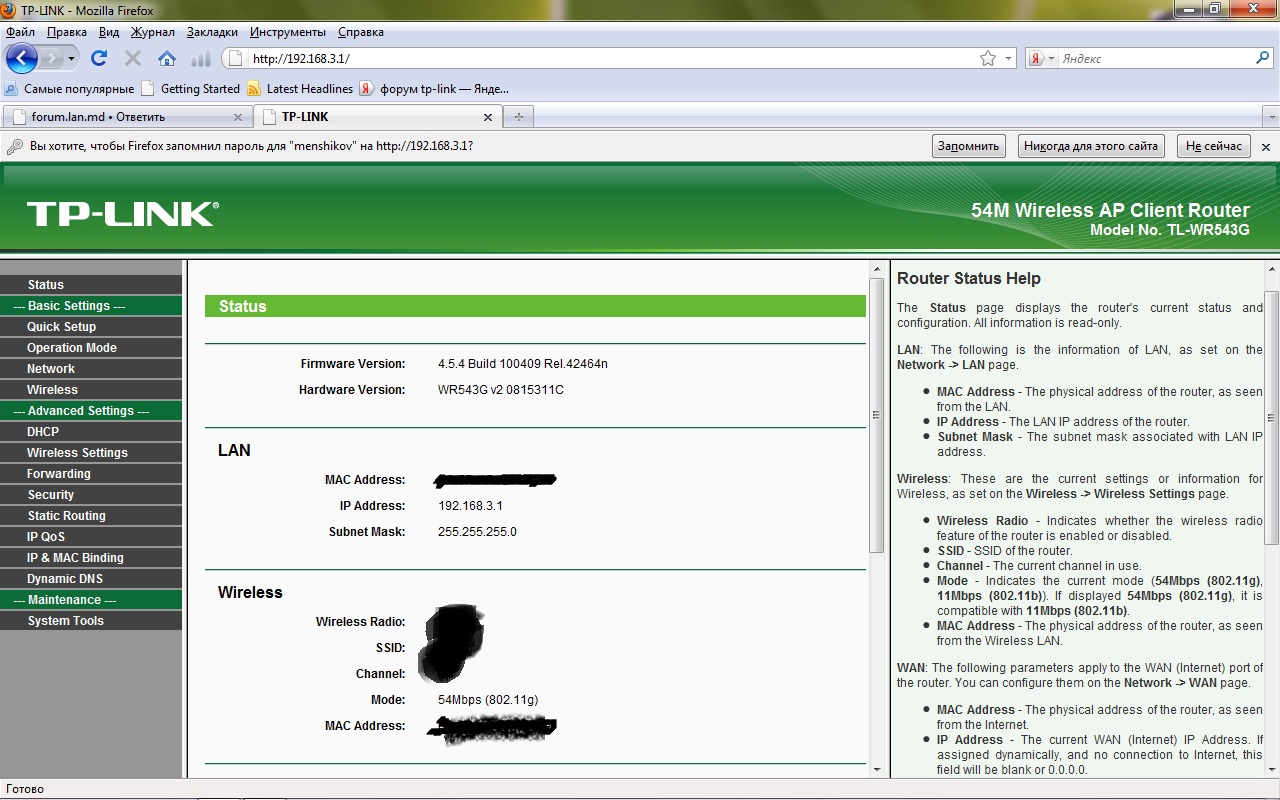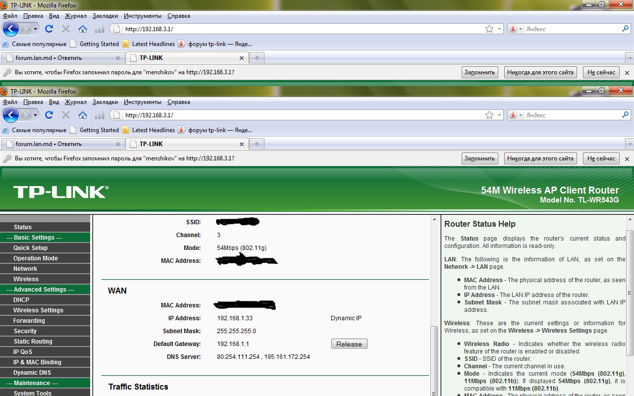 дано: компьютер (Os Win7) который подключен через Wi-Fi роутер tp-link WR543G к модему ZyXel и выходит в интернет.