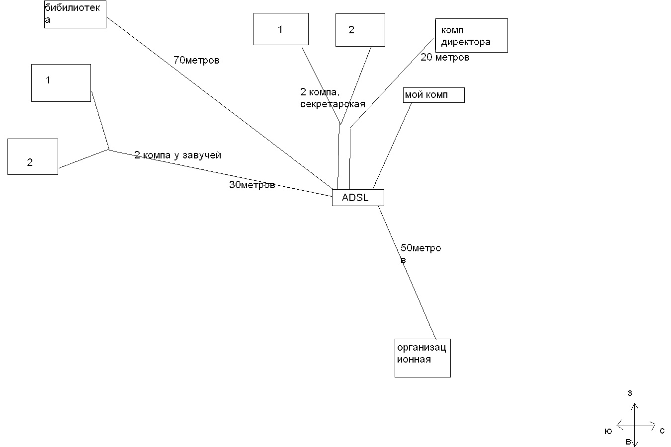 4). 2компьютера у завучей , на расстоянии от модема в 30 метров.